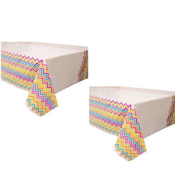 Premium Disposable Waterproof 108" x 54" Dinner Tablecloth Rainbow Design PE Plastic Table Cover Images |